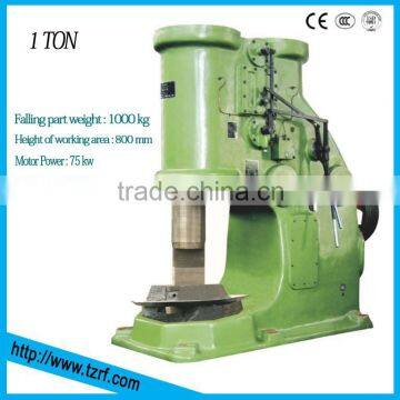 The hammer is operated with operating handle ,that could process six action cycle.----Idle run,lift hammer,press hammer, light hit,wham and single hit,the workpiece must be put on the bottom anvil surface and opposite to the upper hammer die,only this could hit stably the workpiece to the shape you want.