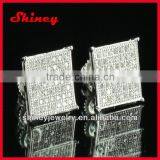 Rhodium Plating Big Square Style 10*10 Stone Big Mens Screwback Earring