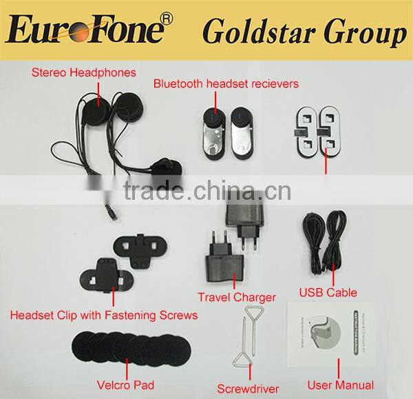This device allows bikers to receive GPS voice instructions, communicate with the passenger on the back seat, to conduct calls on their mobile phone and listen to music or their MP3 player. Last but not least, the device offers biker-to-biker intercom communication.This headset works with any Bluetooth equipped mobile phone. Designed and Engineered for Heavy-Duty Performance. can be realized Bluetooth helmet headset with helmet headset 1000 meters meters of direct full-duplex intercom;Talking time 8 hours, standby 300hours.