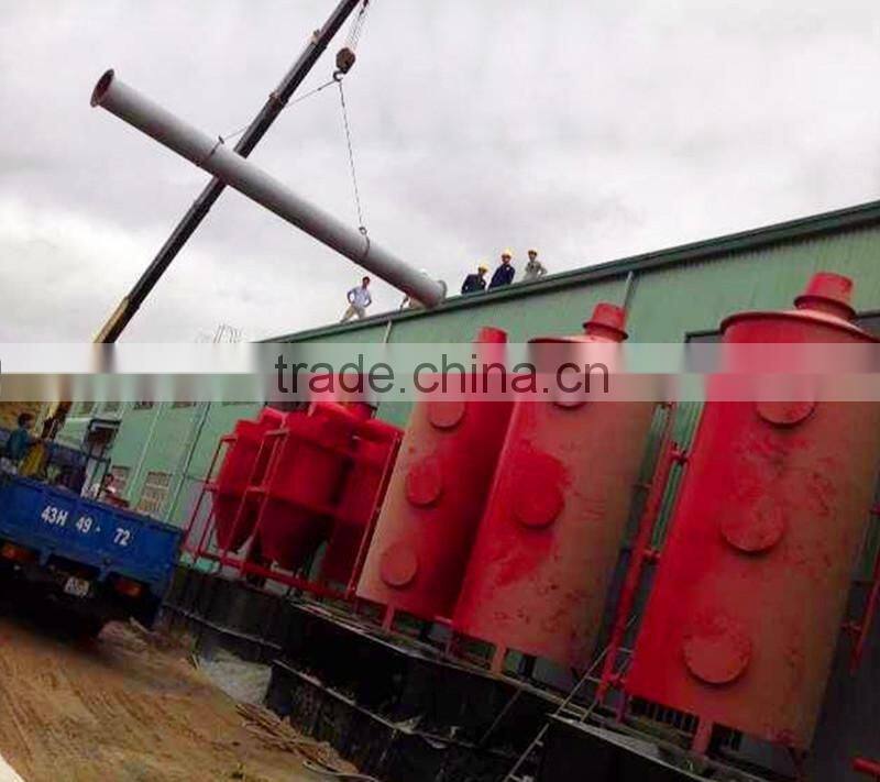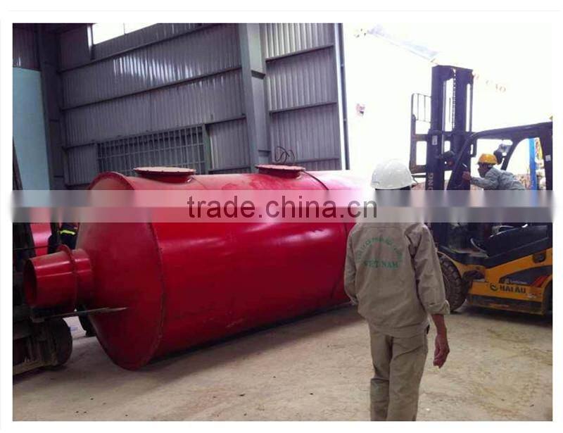 2. Double-layer design make the lower part of the machine contact the hot air as much as possible, this design is helpful to raise the heat utilization efficiency from the beginning. The lower layer equipments utilize residue heat in carbonizing gas to flash steam the materials. This is the second stage to raise the utilization efficiency of heat. The optimized and concentration multi-pipe design of hot exhaust gas (generated from gasifier or hot blast heater) recycling pipe, carbonizing and fission heat collecting pipe, flash steaming steam collecting pipe, combustion emission collecting pipe can raise the heat utilization efficiency in the third time. After three time of optimized usage of heat, the temperature of the emission gas is below 100 centigrade. Under the inspection of related institutes, the heat use ratio of our equipment is over 85%. Our equipment is called perfect flax stem carbonizing equipment by Erie flax factory in Xinjiang province.