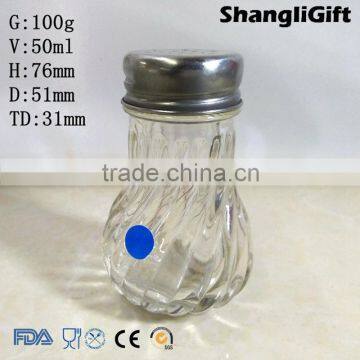 cheap 50ml ribbed glass spice jars pepper salt jars with metal lids
