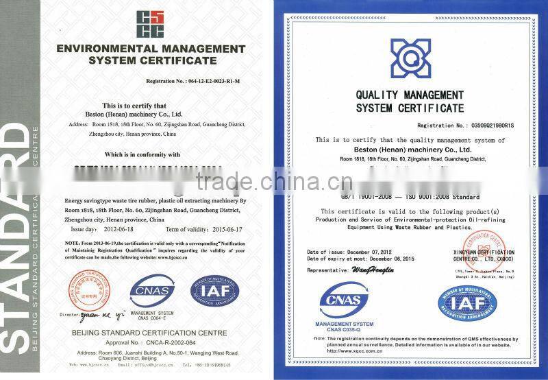 We, Beston(Henan)Machinery Co., Ltd. have been specializing in manufacturing and supplying waste tyre pyrolysis machinesince 1998. Abundant experience enables us to provide you guaranteed products and superb service. We have the unique technology to increase the oil output, reduce the fuel consumption and ensure no danger and pollution during production, not only making great contributions to the environmental career but also bringing a lot of profits for customers.