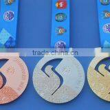 Custom gold silver bronze sport medal with blue lanyard, souvenir gifts alloy medals