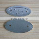 Silver Tone Sand Blasting Custom Oval Shape Clothing Metal Logo