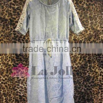 2016 Summer Ladies Lace Short-Sleeve Denim Dresses for Women