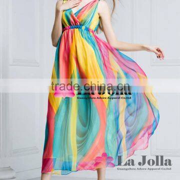 2016 Beautiful Colorful Lady Casual One-piece Dress Women Long Beach Party Kaftan Chiffon New Style Gown