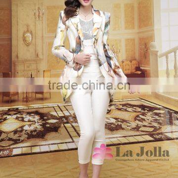2016 Hot Sale Ladies Fashion Printing Flowers Long Skinny Suit Coat Office for Women Quality Choice
