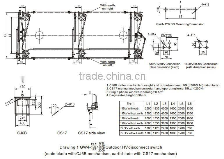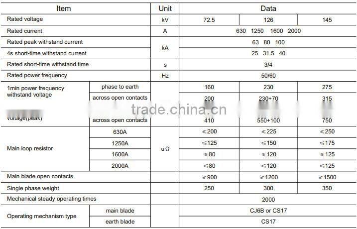 GW4-72.5/126/145 outdoor high voltage disconnect switch is used to open and close high voltage circuit in rated voltage 72.5/126/145kV, AC 50/60Hz system, the anti-pollution type is especially suitable for serious pollution area. It accords with standards of IEC62271-102: High voltage AC disconnect switch.