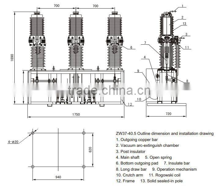 Technical Specification of ZW37-40.5 Outdoor Vacuum Circuit Breaker: