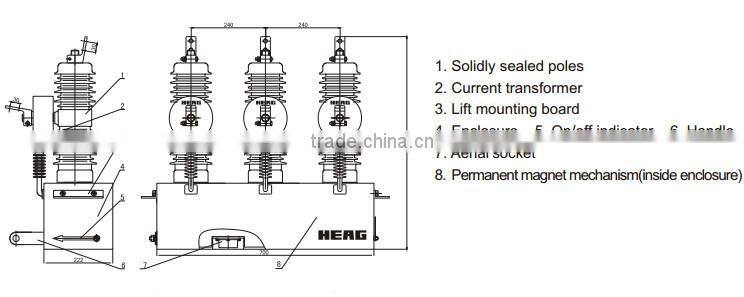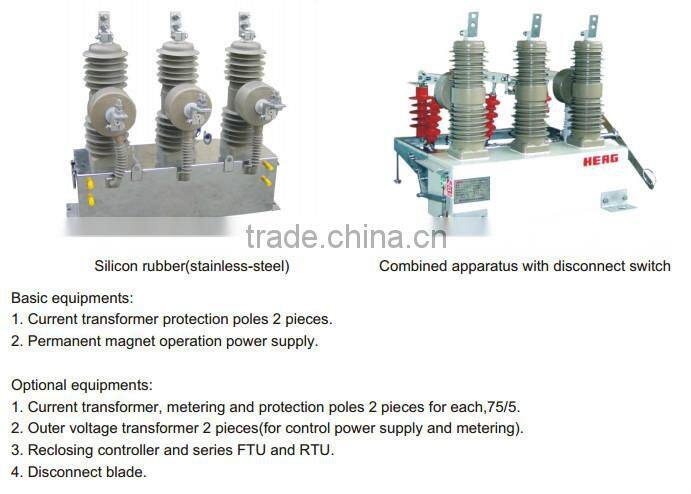 ZW43-12 model outdoor AC vacuum circuit breaker is used to make and break load current, overload current and short-circuit current in12kV, 50/60Hz power system. It is applicable for substations, industry and mining, urban and rural electricity power networks, especially applicable in occasions with frequent operation and automatic power distribution network. It accords with the standard of IEC62271-100 & GB1984: AC high voltage cir cuit breaker, IEC60694 & GB/T11022: HV general technical requirement of switch and control apparatus.