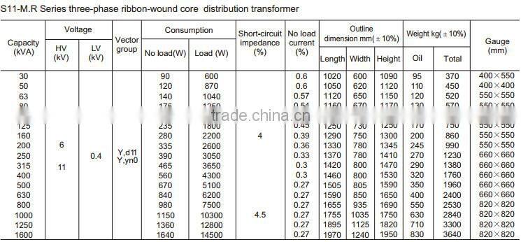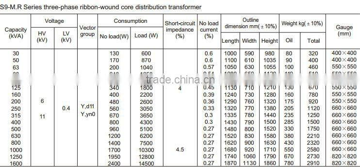 Technical Specification of Full-sealing S9/11-M.R Ribbon-Wound Core Distribution Transformer: