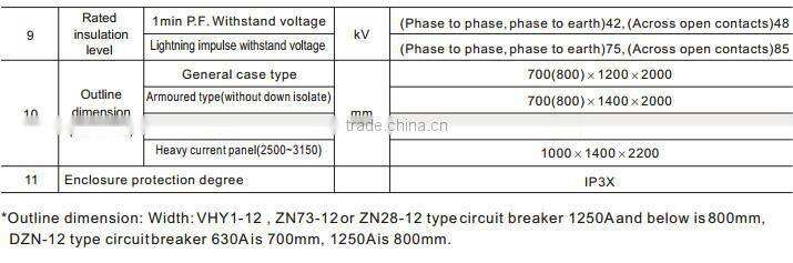 Technical Specification of air insulated high-voltage switchgear cubicle switchgear :