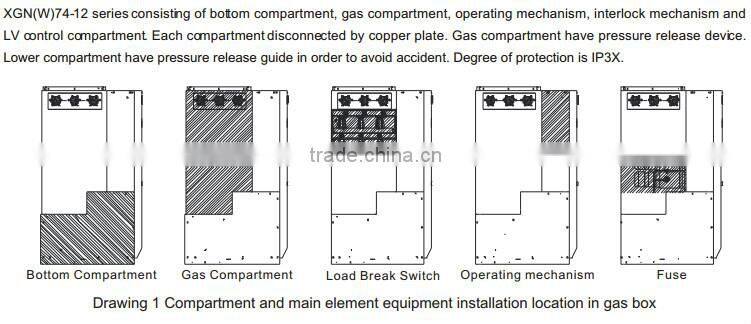 XGN(W)74-12 Series metal enclosed compact switchgear unit module. Each unit has its independent function. It can be extendable to each side, and supplied in different configurations suitable for actually requirement.