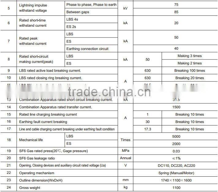 Technical Specification of 11kv Indoor SF6 Gas Insulated Ring Main Unit :