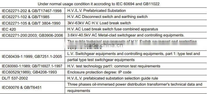 Standards of YB-40.5(12)/0.69 Wind Power Special Compact Substation compartmented switchgear panel :