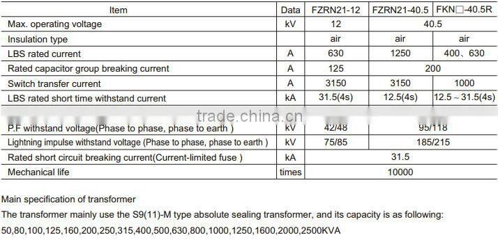 Main Programs of YB-40.5(12)/0.69 Wind Power Special Compact Substation compartmented switchgear panel :