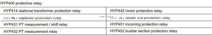 HYP400 digital microcomputer programmable relay is provided for electricity system of rated voltage 40.5kV and below for protection, controlling, measurement and monitoring purposes. It comprises of circuit, input/output line, capacitor, monitor and protective PT. It is suitable for various systems with different connections, such as non-neutro-earthing system, low resistance earthing system and arc suppression coil earthing system.