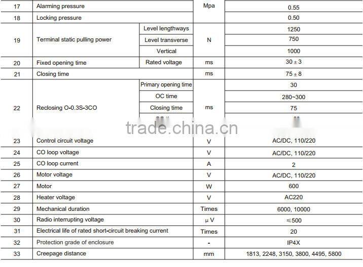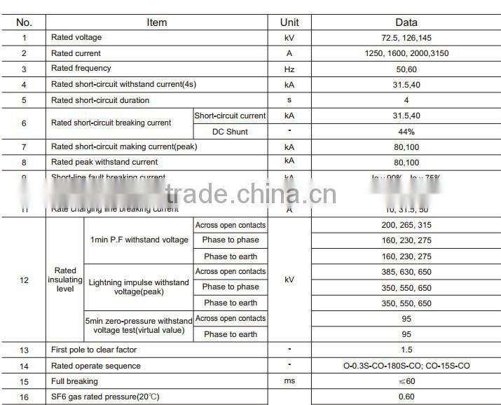 Technical Specification of LW36B-126 High Voltage SF6 Circuit Breaker :