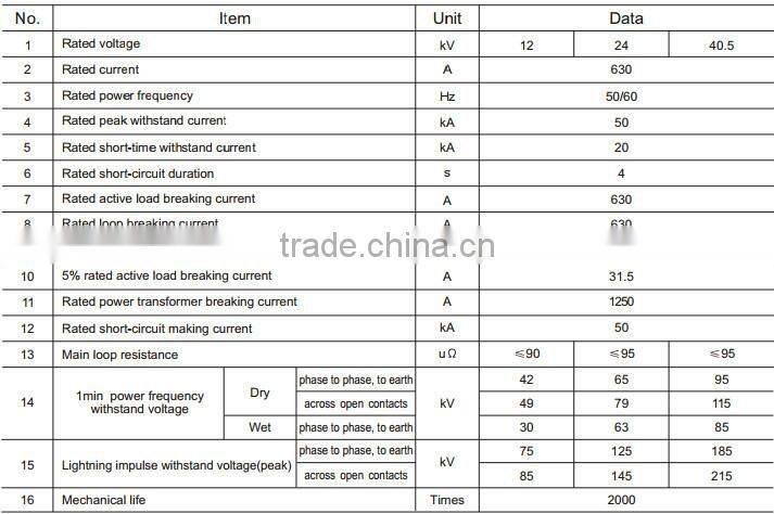 Technical Specification of FKW18-12/24/40.5 Outdoor Load Break Switch HIGH VOLTAGE