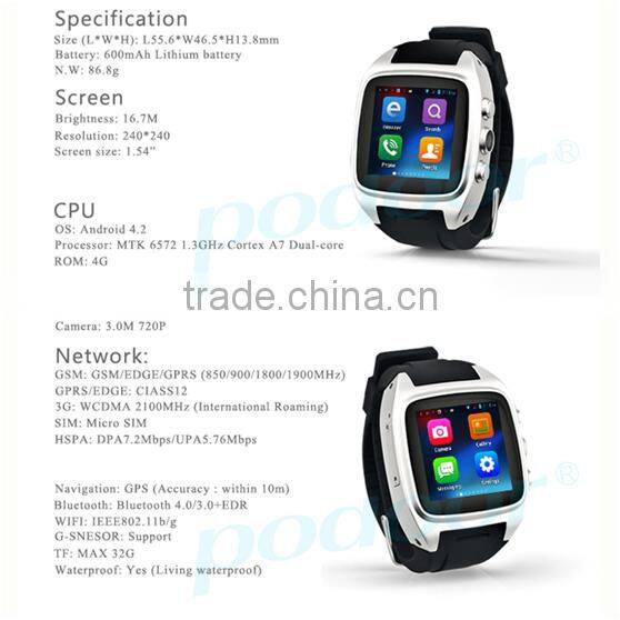 3G WiFi GPS GSM Android Smart Watch, Sim Card Phone Call