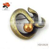 Special Pattern Design Vintage Simple Costume Decorative Metal Brooch With Pearl