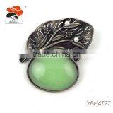 Dignified Fashion Engraved Alloy Pearl Green Resin Vintage Leaf Booch Jewelry