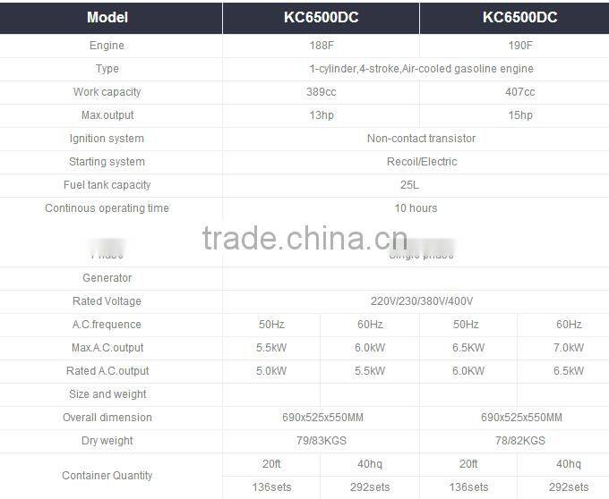 AC single phase 5KW/5KVA petrol power generator13HP KC6500 gasoline generator set with electric start