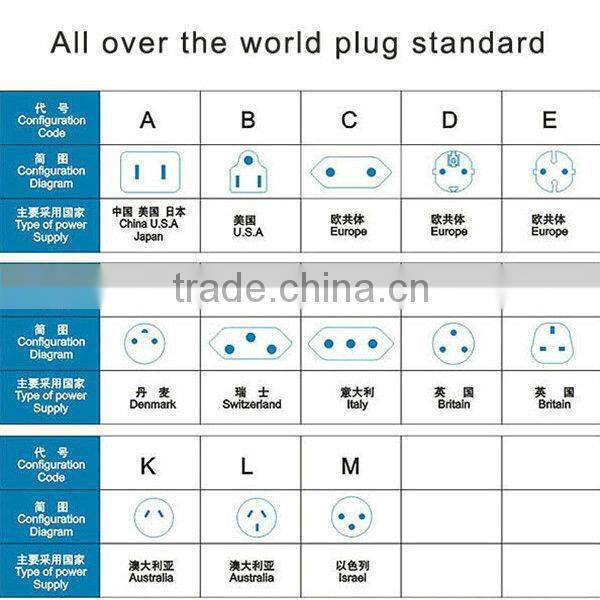 Plug can be customized (US, UK, EURO Standard Plug and so on )