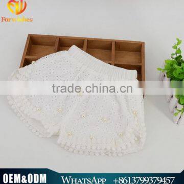 New Korean Cute Baby Girl Beaded Clothes Shorts 2016 New Summer Girl Ivory Corchet Pearl Pants Lovely Little Girl Short Pants