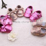 2015 Multi Color Fringe Infant Baby Shoes Manufacturer Made Cute Bownot Shoes 100% Handmade Baby Toddler Moccasins