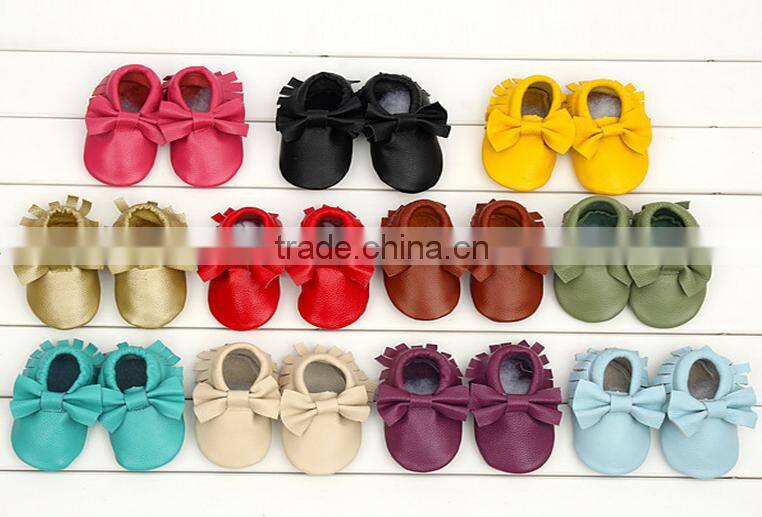 2015 Multi Color Fringe Infant Baby Shoes Manufacturer Made Cute Bownot Shoes 100% Handmade Baby Toddler Moccasins