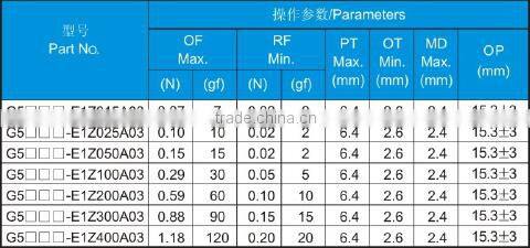 -Wide Range Operating Force: 15gf. 25gf, 50gf, 100gf. 150gf. 200gf. 300gf. 400gf max. optional.