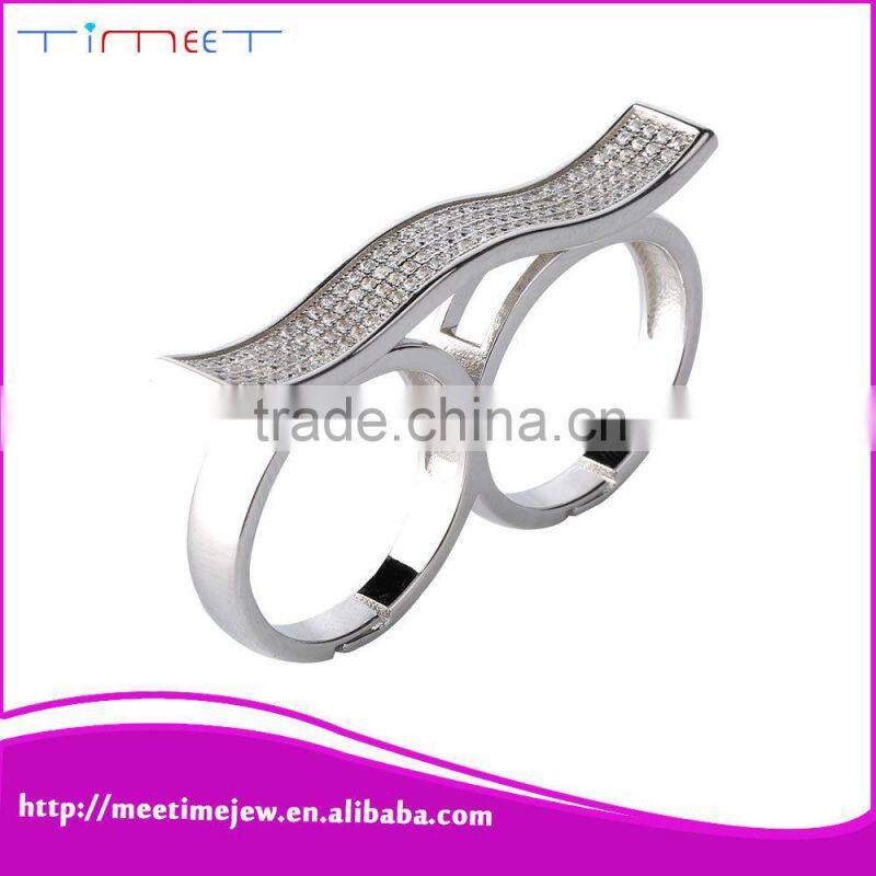 Hot wholesale white gold jewelry two finger cluster ring
