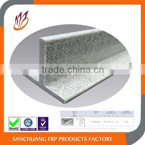 FRP /GRP T profile are manufactured by combining various resins with pure glassfibre reinforcement. They are formed and cured in a continuous process creating a product of extraordinary strength and resilience. The resultant fibreglass pultruded profiles offer a combination of benefits and mechanical properties exceeding those of metal. Manufactured from pultruded fibreglass profiles and can be supplied in channel, I-bean, box, angle and tube sections for the construction of chemical resistant plant assemblies. The materials are often used to fabricate stairs, access platforms, step over platforms and ramps