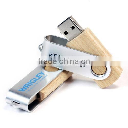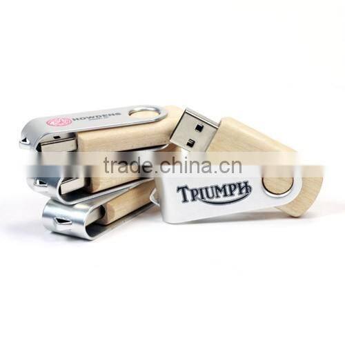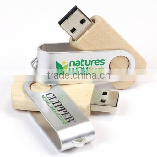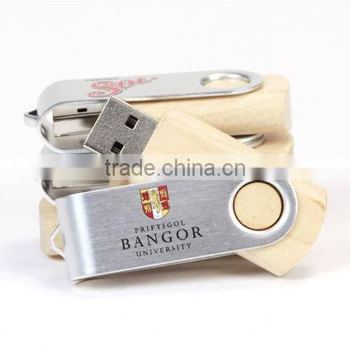 Wooden Swivel Design Usb Flash Drive With LOGO