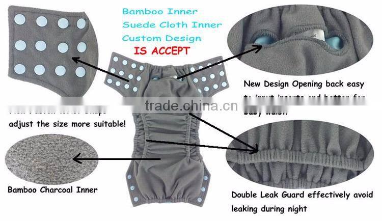 | Product Name | New 2015 Double Gussets reusable Charcoal Bamboo Baby Cloth Diapers |