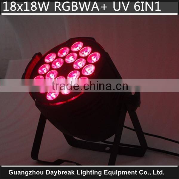 Cheap Price RGBWAUV Led Par Cans 18x18w 6 in 1 DMX512 6/10CH 110v-240v