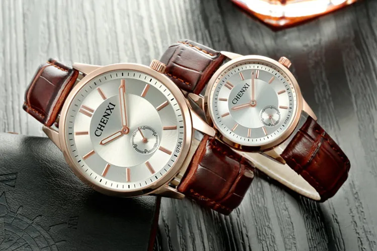 Top Selling Business Janpan Movt Quartz Brown Leather Couple Watch