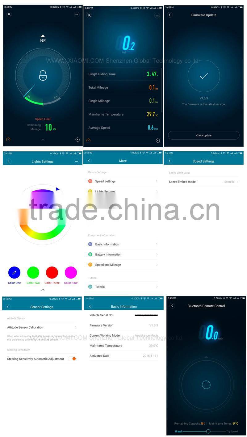 Mi Scooter connect your smartphone by bluetooth; you can lock and unlock Mi Scooter by your mobile; Moving Mi Scooter without correctly, xiaomi scooter and your mobile phone will start to alarm; Besides, you can custerize other personal setting in your app