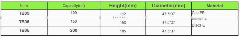 Hot Selling 100ml/150ml/200ml pe Bottle