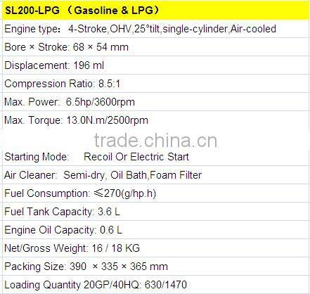 1) fuel : can use gasoline or LPG (liquefied petroleum gas )