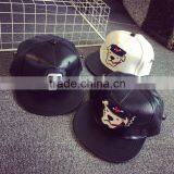 2016 Newest Cartoon Embroidery Man Women Fashion Cool Flat Brim PU Leather Snapback Quality Choice
