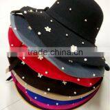 Wholesale Promotional Gift Star Style Wide Brim Wool Felt Fedora Sun Cap