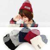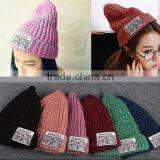 Label Embroidery Multi-colors Plain Knitting Girls Beanie Hat and Cap