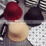 Fashion Korean Bowknot Ribbon Elegant Women Wool Felt Bucket Hat