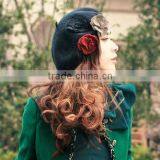 Wholesale Three Flowers Decorated Women Charm Elegant Wool Hat Beret