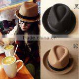 2016 Latest Leisure British Retro Rolled Brim Man Women Lady Real Wool Fedora Hat