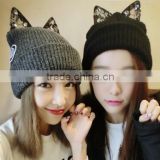 Hot Selling Super Star Rihanna Same Style Lace Cat Ear With Jewelry Embroidery Ladies Hat