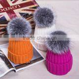 Wholesale New Colorful Detachable Raccon Fur Pompom Fashion Girls Winter Caps