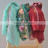 Hot Sell Fashion Beautiful Flower Embroidery Long Cotton Scarf Hejab